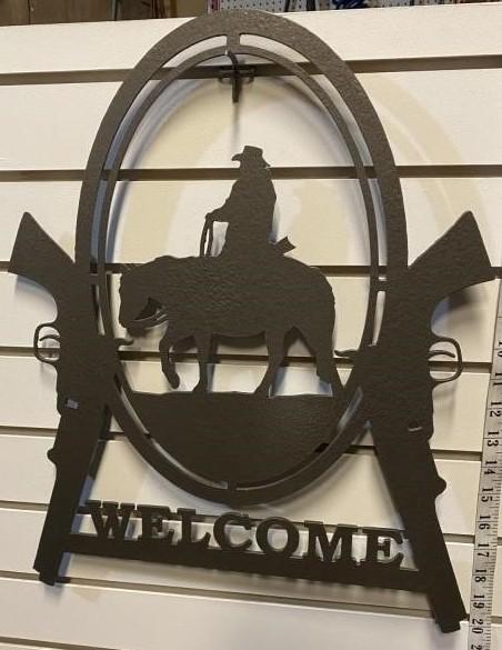 WELCOME SIGN -Rider on horseback -Finished in hammered dark Grey paint